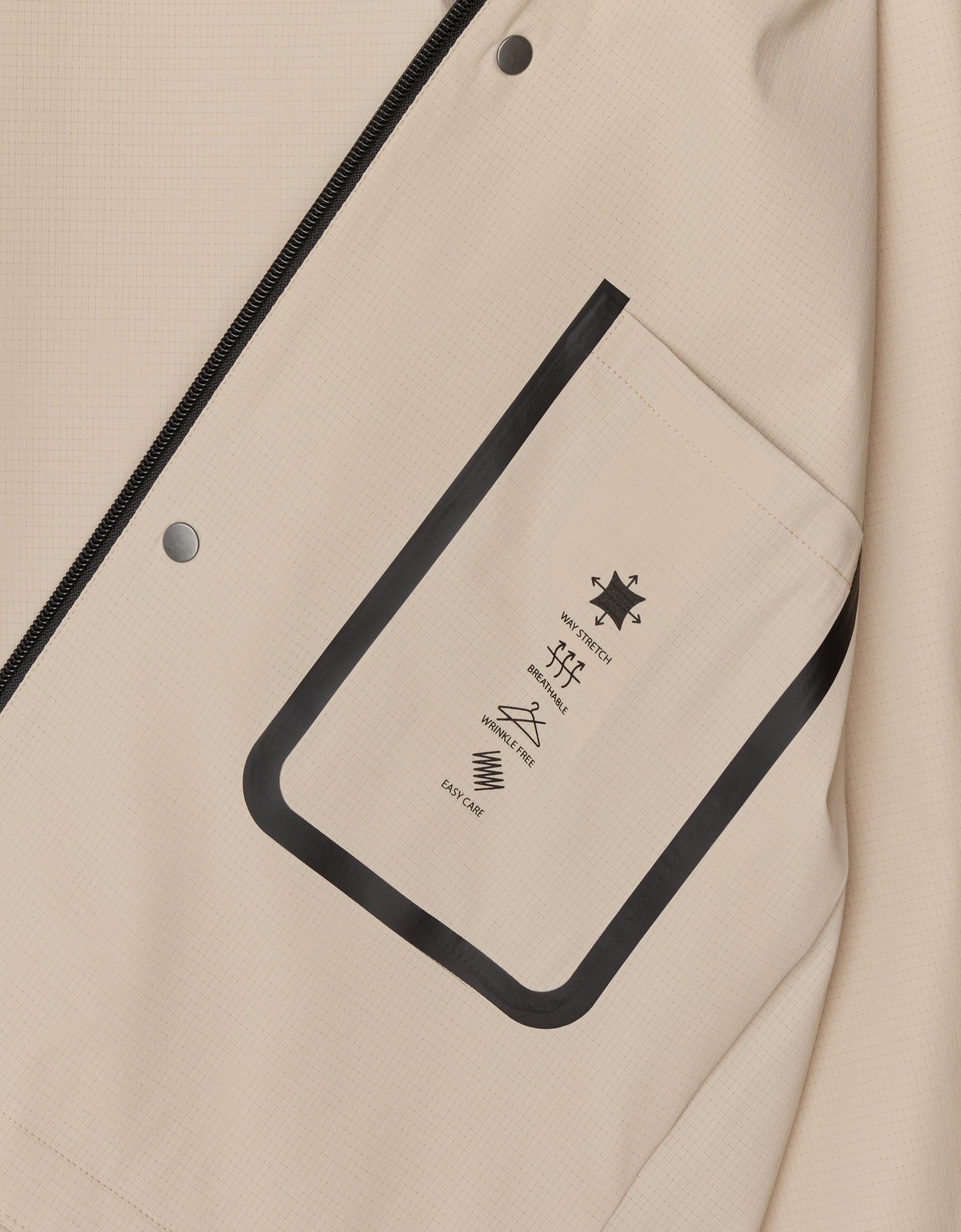 Roana BZ to beżowa, lekka kurtka przejściowa o minimalistycznym kroju, wykonana z przepuszczającego powietrze materiału o technicznej fakturze. Klasyczny kołnierzyk oraz brak ściągacza nadają jej wyrafinowanego charakteru i nowoczesnej struktury, która doskonale układa się na różnych typach męskiej sylwetki.